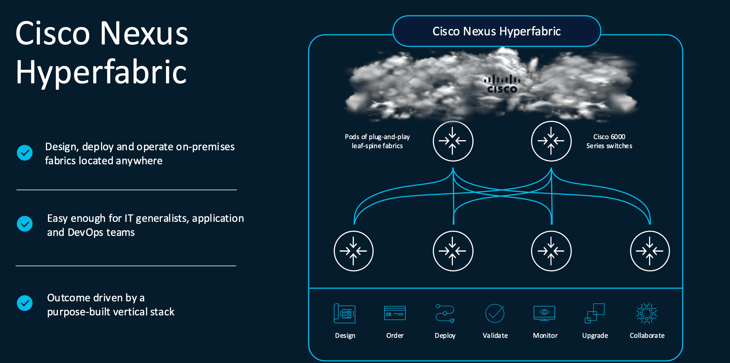 Cisco built HyperFabric in about two years. What they did is something I find we don’t do often enough in IT. They took a blank piece of paper and determined what are the actual modern requirements of a data center network (fabric) and why this frequently fails in implementation.