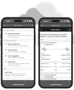 All networks start with a design, Cisco’s Hyperfabric too. You log in to a website with your credentials and start setting up your design and sizing requirements. Define the network topology, such spine-leaf or full-mesh, and what type of servers you will connect to the fabric. Once you are satisfied with the design, a kitlist (bill of materials) can be exported and shared with your Cisco partner for discount and ordering. The UI seems simple and clean, which helps in getting these fabrics up & running. But that is not all, it’s not only a design tool, it’s also the fabric controller. So your design was already validated before ordering. The controller now “knows” which SFP goes into which port and for which configuration. No need to write an implementation plan anymore.